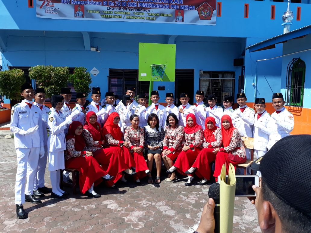 Foto Anggota Paskibra Bersama Guru-Guru Senyum Alumni Yang Sudah Bekerja Muhammad Shaifullah (Kiri: PT. CAS Destination), Threy Deny Sitorus (Tengah) dan Mardandy Fan Leo Daulay (Kanan : Sriwijaya Air) Ujian Kompetensi Keahlian 2017 Prodi Airframe Powerplant 1/10 Album Foto SMK Penerbangan PBD Medan :